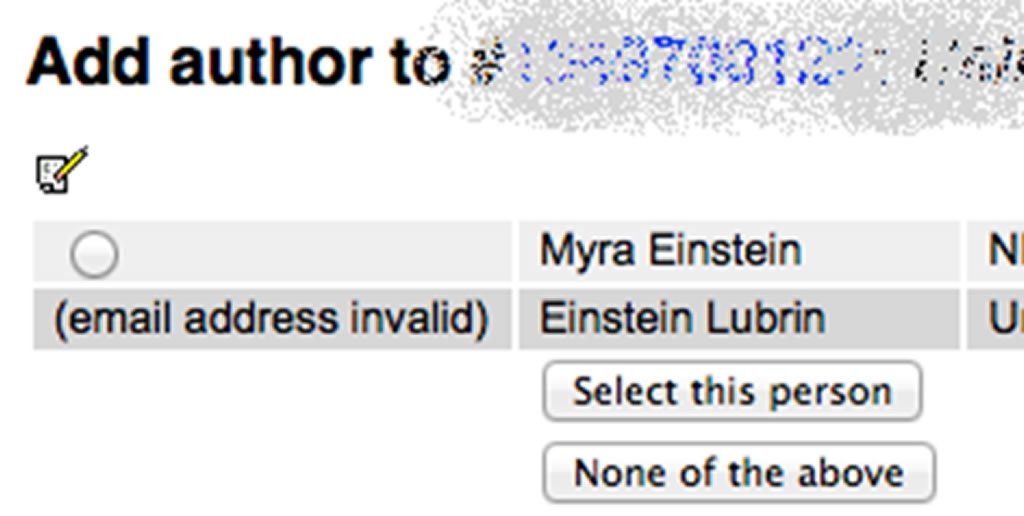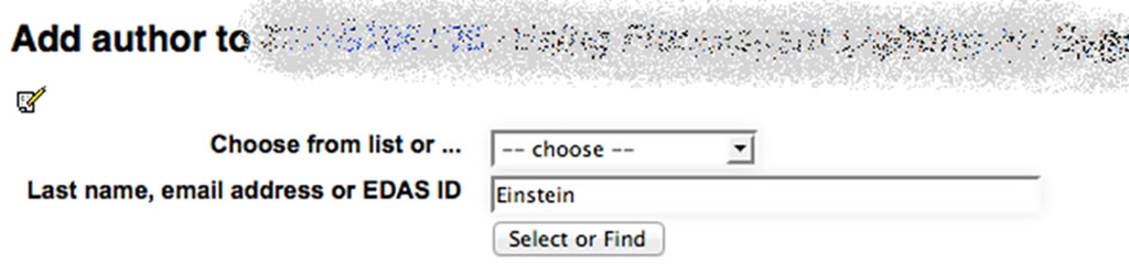 In the form above, enter each author using either their EDAS identifier, email address or their last name. Each author must be registered in EDAS. You will then be prompted to choose among existing EDAS entries:
